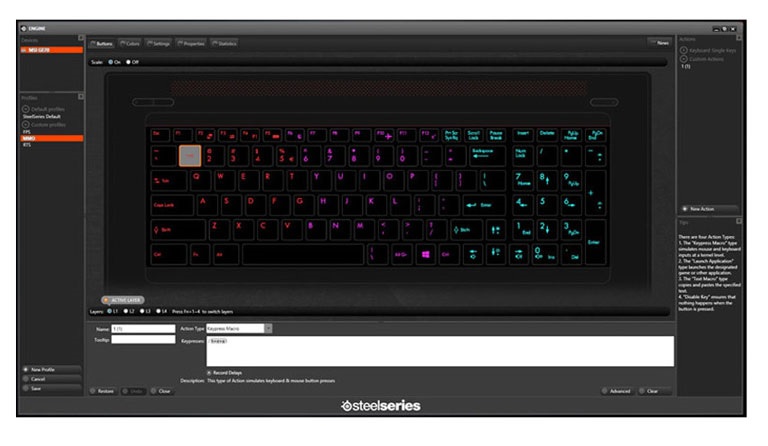 کیبورد و تاچ پدکمپانی SteelSeries، سازنده محصولات جانبی مخصوص بازی مانند ماوس، هدست و دیگر تجهیزات است که MSI در لپ تاپ Apache خود، این کمپانی را به خدمت گرفته تا در ساخت کیبورد این دستگاه همکاری داشته باشد. کیفیت ساخت کیبورد بسیار بالا است و کلیدها فاصله و عمق مناسبی دارند. کلیدها به شکل مربعی هستند و اندازه مناسبی دارند. برچسب حروف فارسی نیز بر روی کلیدها چاپ شده و برای تایپ کردن به زبان فارسی، کاربر مشکلی ندارد. جزیره ای بودن کیبورد، تایپ را به عملی لذت بخش تبدیل کرده و وجود کلیدهای Num-Pad نیز در سمت راست کیبورد مزیتی است که در تمامی لپ تاپهای 15 اینچی به کمک کاربر میآید. کلیدهای Ctrl، Shift و Tab نیز بزرگ طراحی شده اند تا بازیکن احساس ناراحتی و کم بودن محل قرار دادن انگشت را نداشته باشد و همچنین میزان خطا را بسیار کم کند. |
