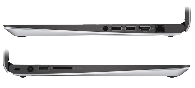 پورت و اتصالاتمتاسفانه این سری از لپ تاپ های Dell تنوع پورتی ندارند. روی لبه چپ دستگاه شاهد قفل ضد سرقت Kensington و ورودی کابل شارژر لپتاپ هستیم. در کنار آنها تک پورت USB 2.0 به همراه کارتخوان دستگاه قرار گرفته است. بر روی لبههای جلویی و پشتی هیچگونه پورت یا اتصالی ندارد. لبه سمت راست میزبان پورت شبکه Ethernet با سرعت 100 مگابیت بر ثانیه در کنار پورت HDMI است. دو عدد پورت USB 3.0 نیز بر روی همین لبه قرار دارد. جک 3.5 میلیمتری صدا نیز آخرین اتصالی است که بر روی این دستگاه دیده میشود. ارتباط بیسیم این لپتاپ نیز از طریق شبکه بیسیم Wi-Fi با استاندارد 802.11a/b/g و بلوتوث نسل چهارم انجام میشود. |