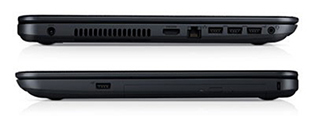 Dell برای کاهش ضخامت دستگاه، مجبور به حذف برخی از پورت ها شده است که در اینجا خروجی تصویری VGA حذف شده است. اما همچنان پورت HDMI در دستگاه باقی مانده است. این دستگاه دارای یک پورت LAN و یک خروجی صوتی 3.5 میلی متری نیز می باشد. در مدل های 15.6 اینچ این سری چهار پورت USB دارند که 3 تای آنها USB 2.0 و آخرین پورت USB3.0 است.